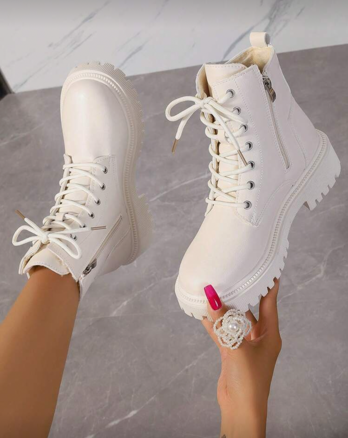 • Cordones y cremallera lateral para ajuste seguro y práctico.